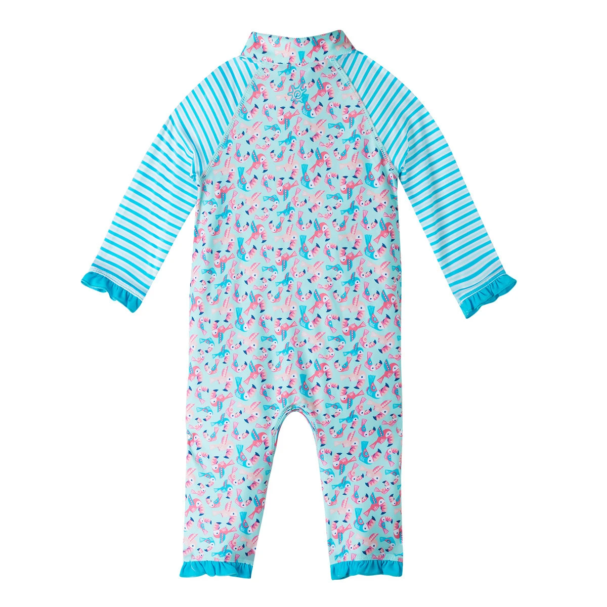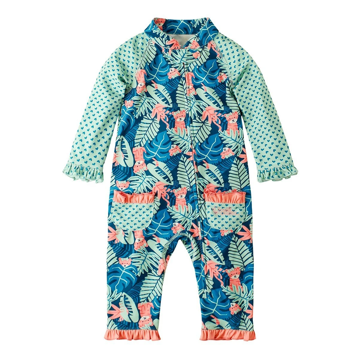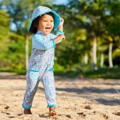 Absolutely adorable only begins to describe our baby girl’s swimsuit which is not just cute but also awesome at protecting your little girl’s skin from the sun’s UV rays. This UV swimsuit is the ultimate baby one-piece bathing suit featuring lightweight, breathable fabric, and a UPF 50+ rating for excellent sun coverage and protection on the beach or in the water.Â