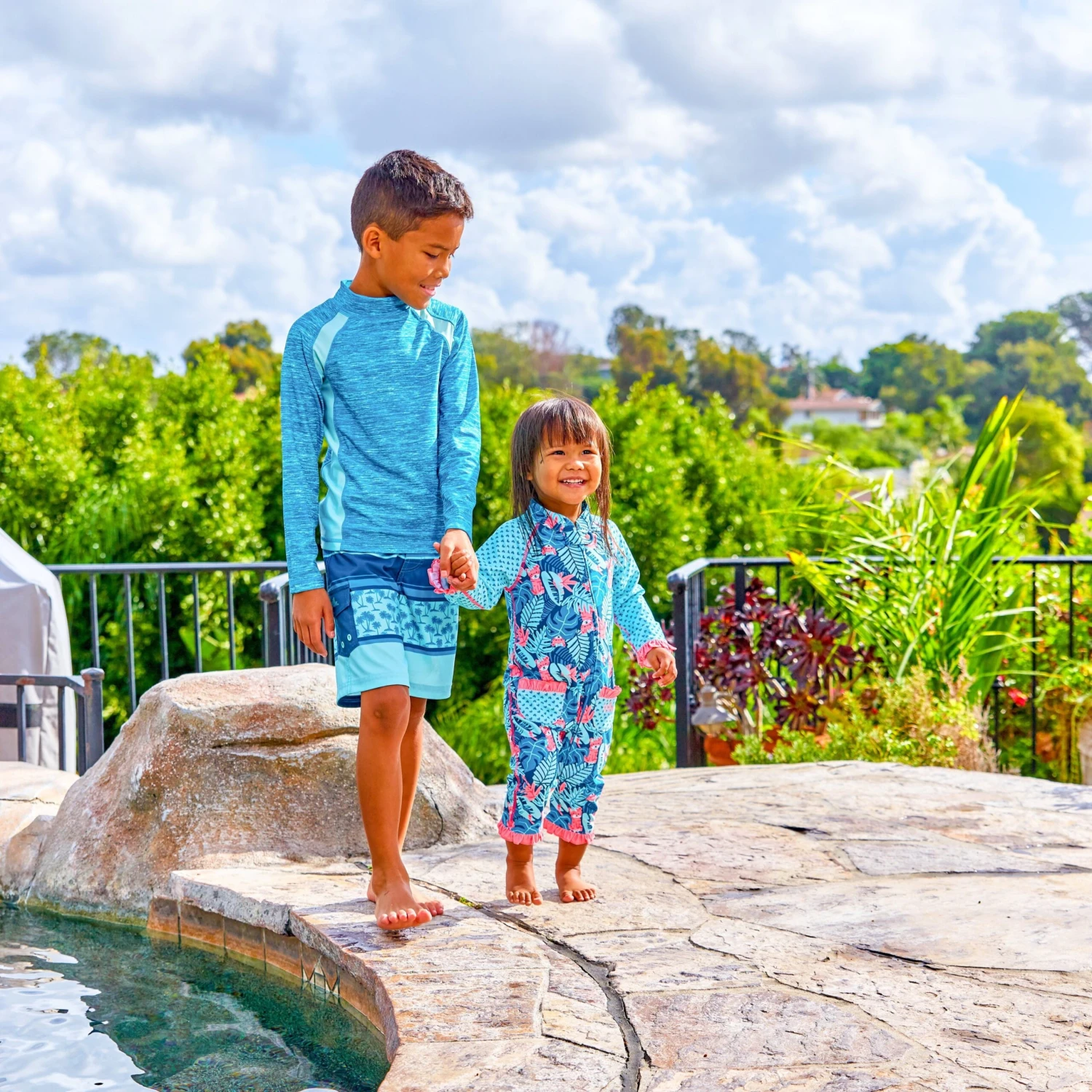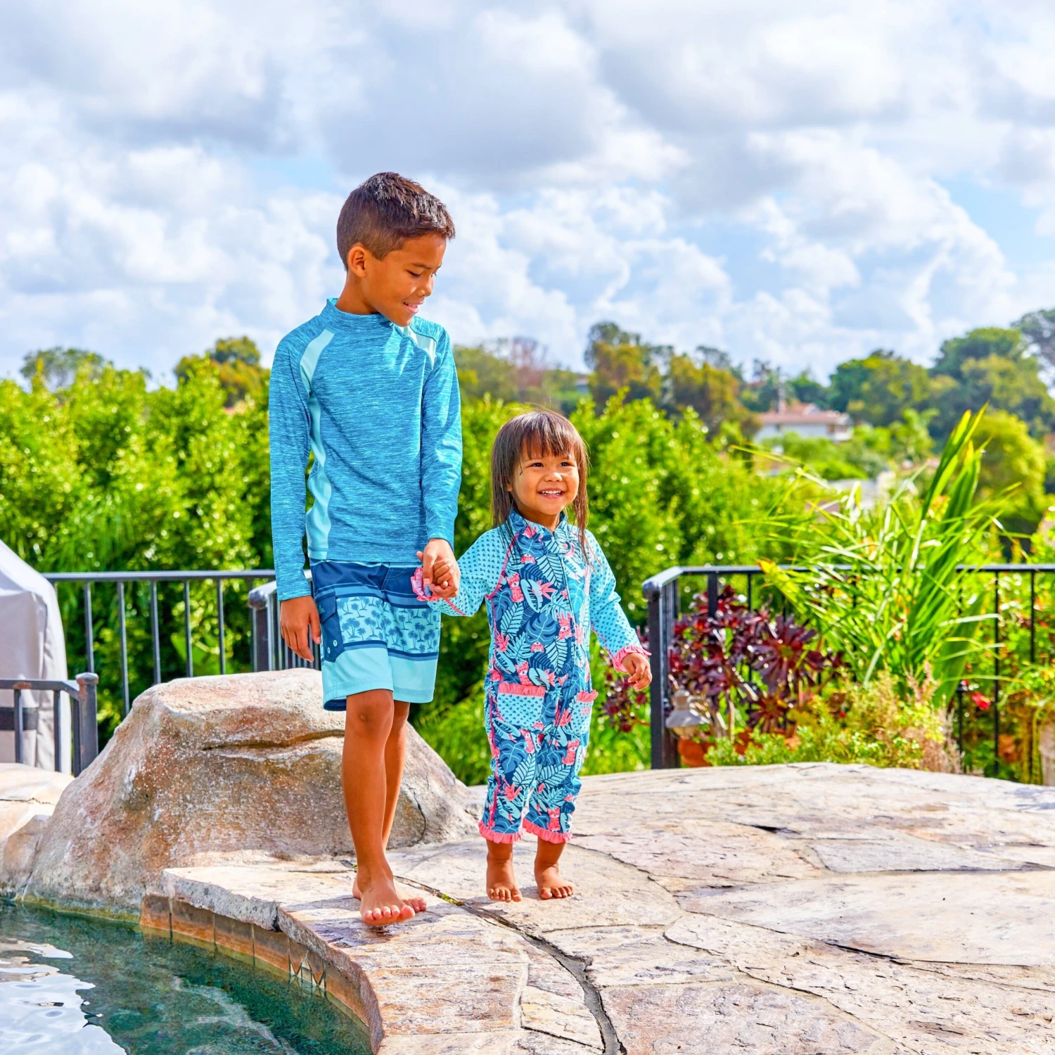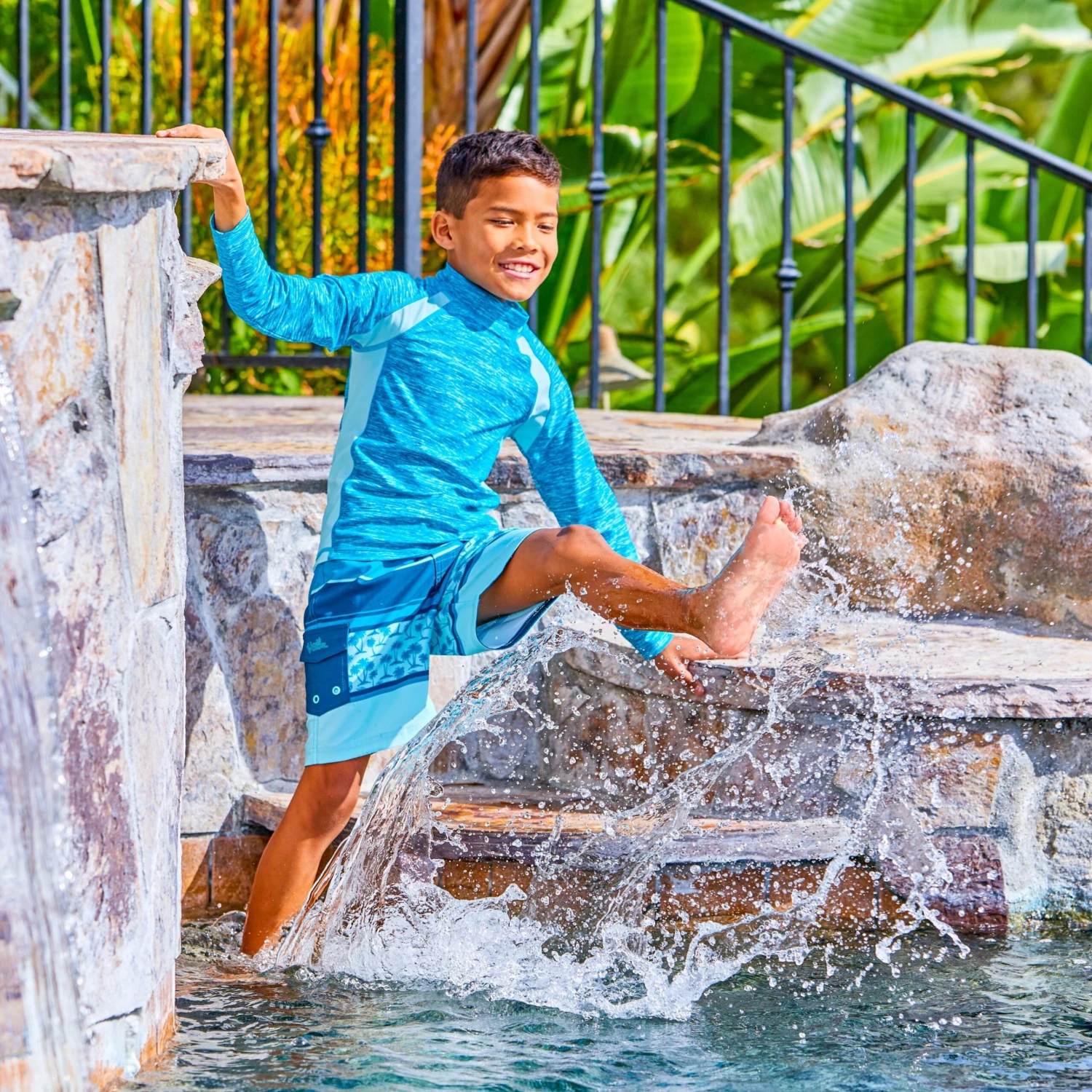 Lightweight, quick-drying, and designed with mobility in mind, our boy’s long sleeve active sun and swim shirt is made to keep up with your little man’s active lifestyle. Certified UPF 50+ this boy’s long-sleeve swim shirt offers excellent UV protection, chlorine and saltwater resistant fabric to last through multiple summer seasons, and lightweight, buttery soft fabric to keep your little dude comfortable under the sun.
