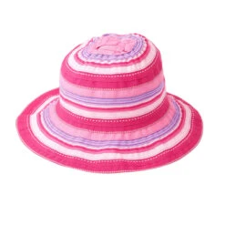 She’ll happily play in the sun all day long in our colorful girl’s rainbow ribbon hat. This girls sun hat features a 3 inch brim, decorative ruffles, and sun protection too. Certified UPF 50+ it will keep her safe from over 98% of the sun’s UV rays!