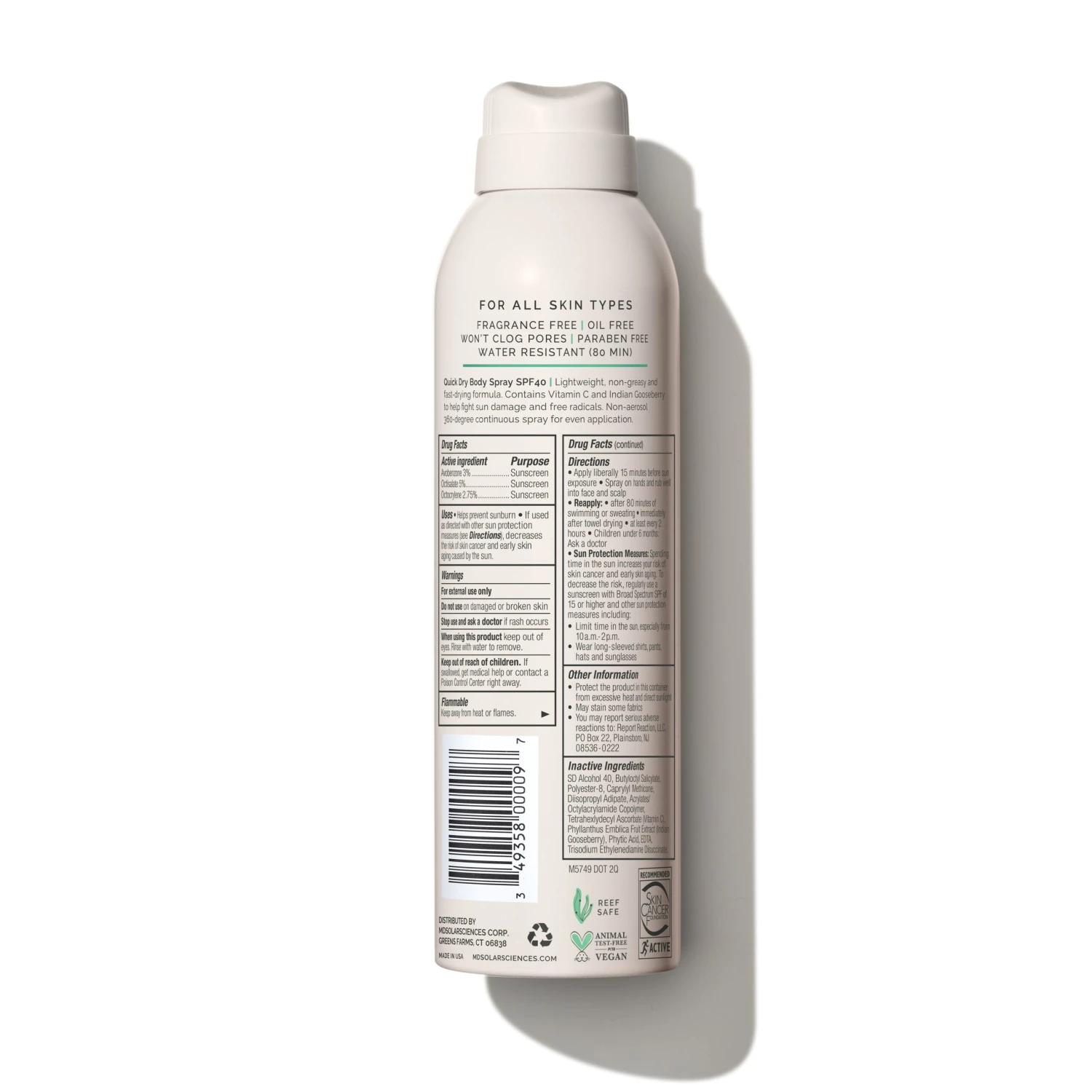 Fast-drying, non-greasy and lightweight, MDSolarSciences quick dry body sunscreen spray with SPF 40+ was dermatologist-developed so its made with natural ingredients. It’s actually made with the safest, most natural sunscreen ingredients on the market!