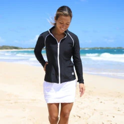 Perfect as a cover-up after a swim, put this women’s classic water jacket on after you’re done with your favorite water activity to stay warm and protected from the sun. This women’s water jacket with a UPF 50+ rating is great when you need an extra layer to wear when the sun sets and is as versatile as it is stylish.Â