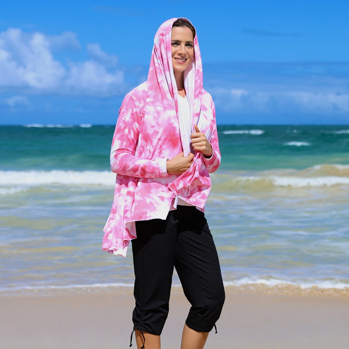 Stylish, lightweight, and breathable, our women’s versatile hooded resort wrap will make an excellent wardrobe addition for your next travel destination. Wear this UPF wrap as a jacket, beach coverup, or shawl for full coverage sun protection wherever life takes you.Â