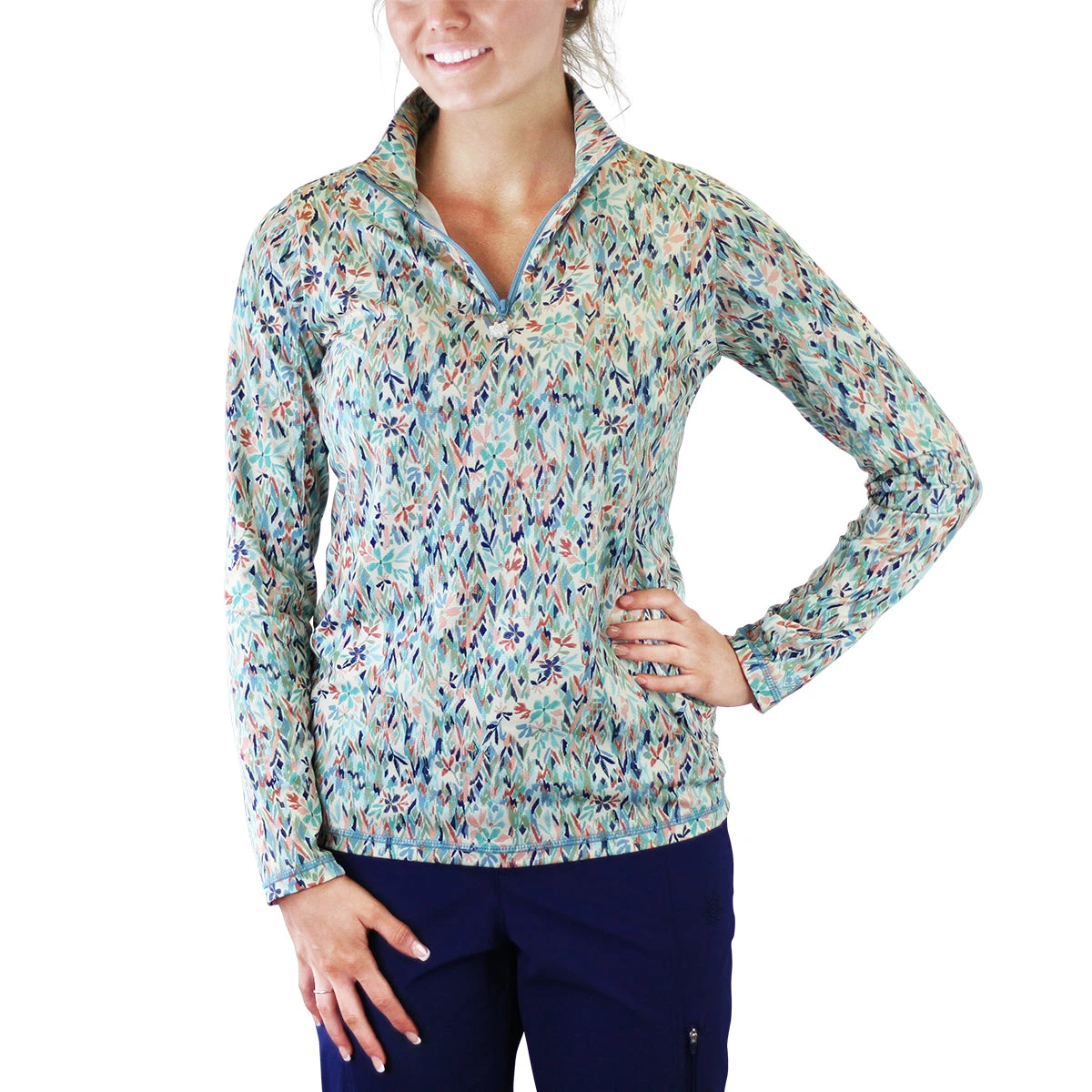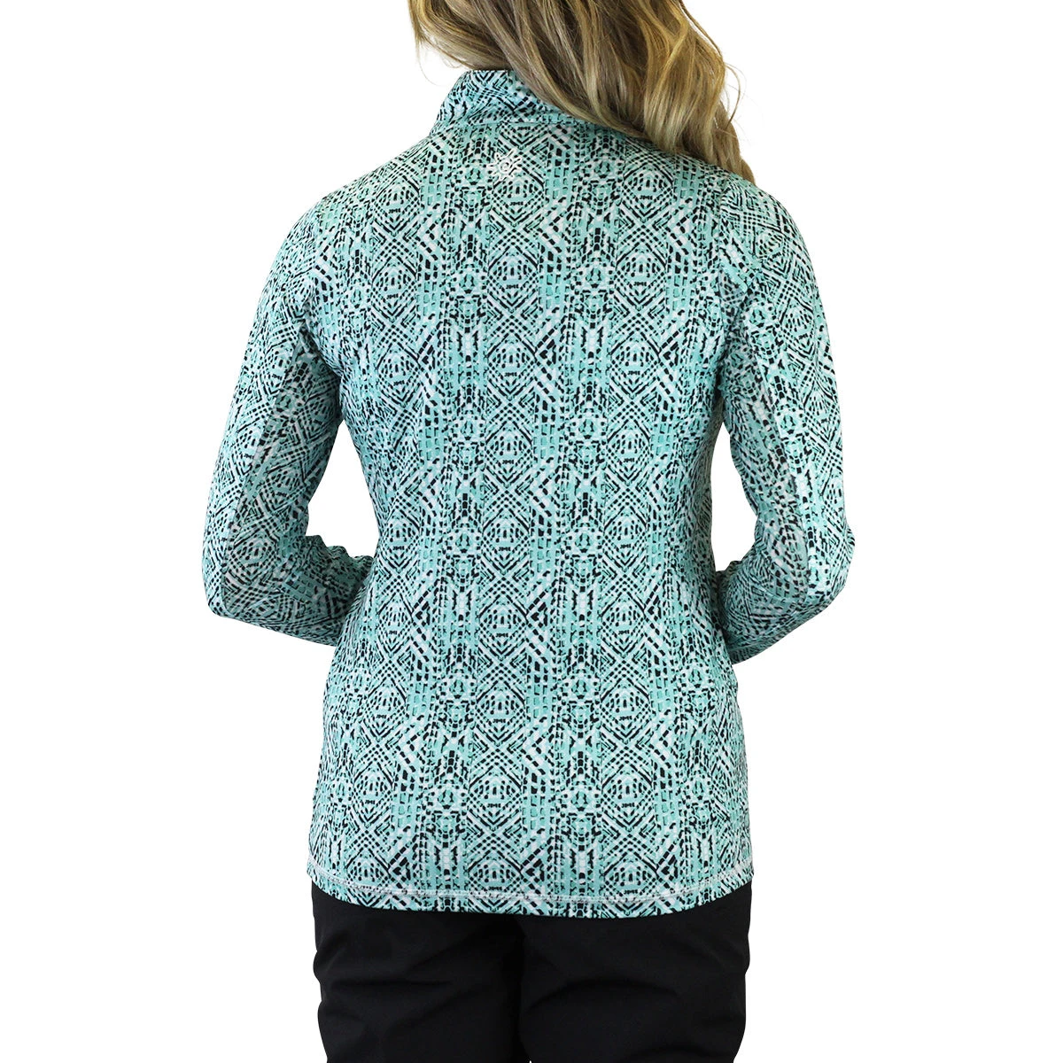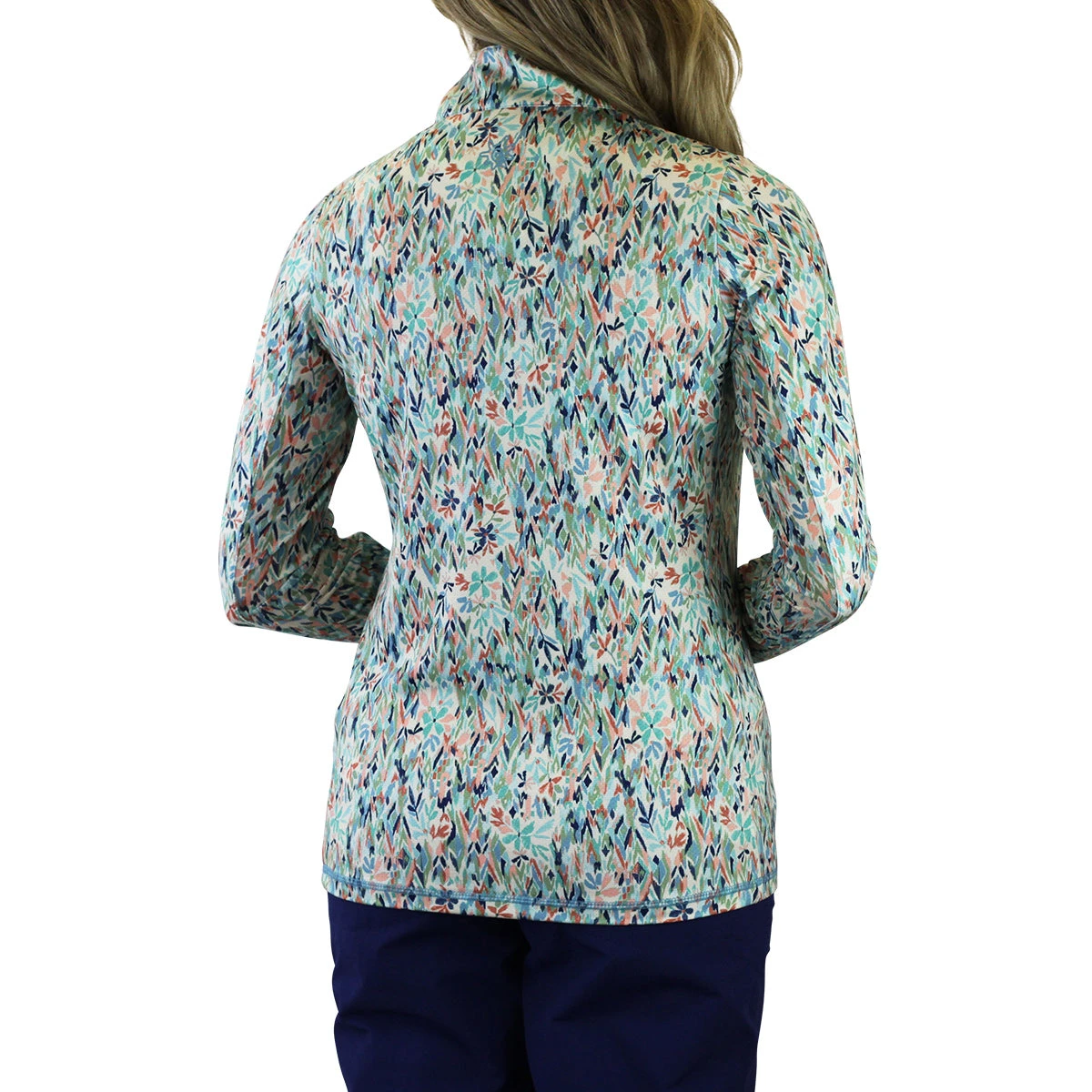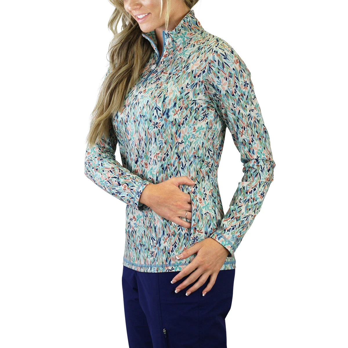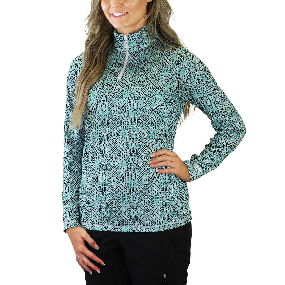 The extended mock collar provides added coverage for the neck and chest. With the secure side zipper pocket, this will quickly become your go-to basic for hands-free activities like golf, kayaking, SUP, gardening, hiking, and more.