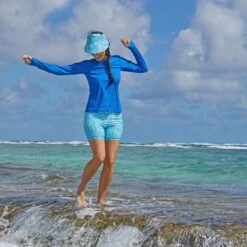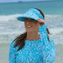 A must have accessory for those ladies who love being out under the sun, our women’s swim visor with a UPF 50+ rating is ideal to wear in and out of the water. This swim visor for women makes the perfect swim hat or accessory for you favorite water activities as it floats! Pair it with one of our women’s matching swim shirts for a stylish and flattering beach look.