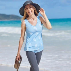 We’ve thought of everything when making this women’s swim tank top! Featuring a built-in shelf bra for added support and coverage, a fully lined form-fitting under layer for added modesty, and an a-line flattering swing fit for added comfort during any activity, this swim top for women has it all. Certified UPF 50+ it will also keep you sun safe while relaxing or out enjoying your favorite outdoors activity under the sun.
